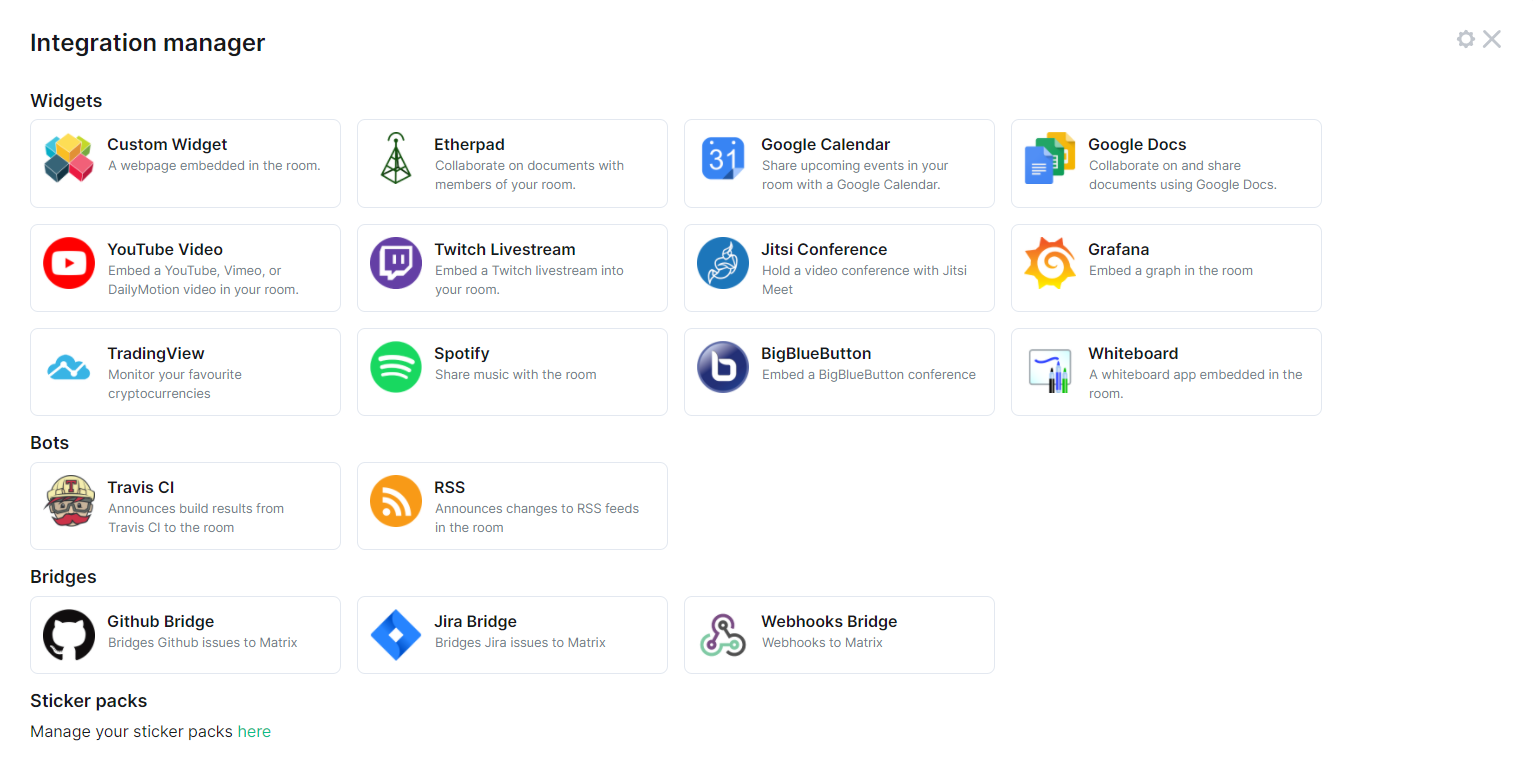 An open source integration manager for matrix clients, like Element.