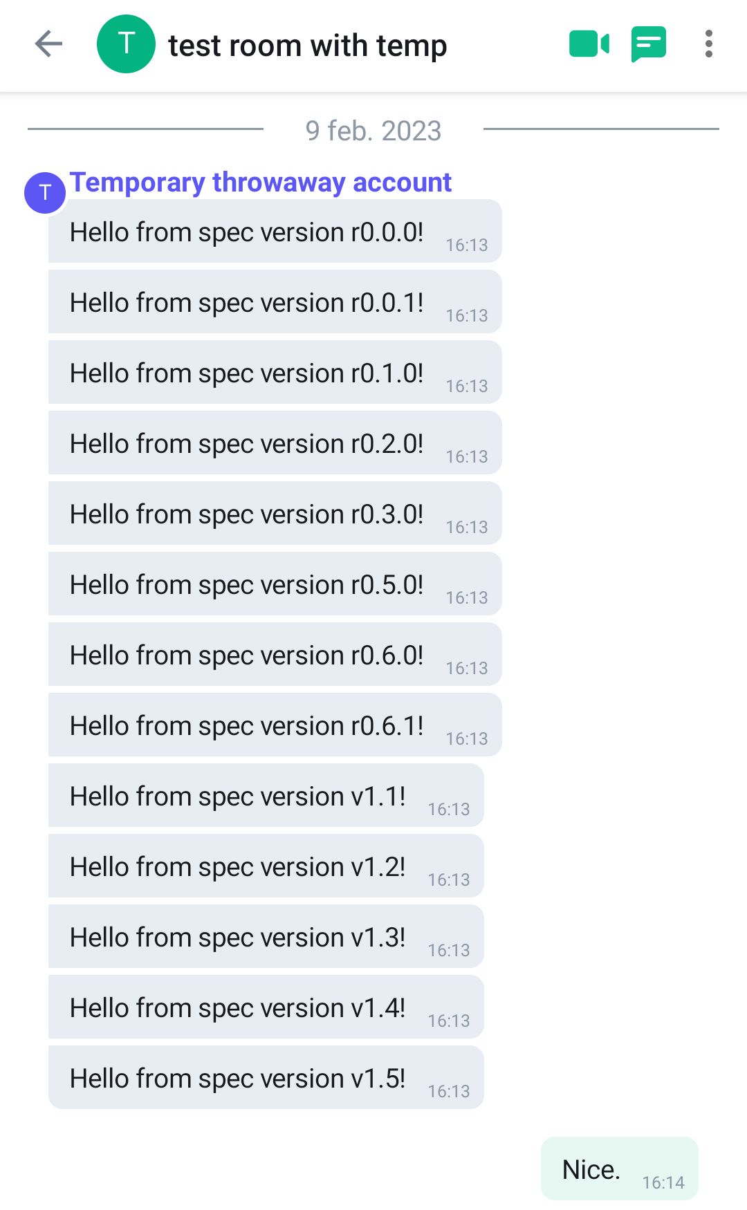 I hope to release a version v1.0.0 in the near future, but I wanted to share my first breakthrough as I managed to write a simple program that sends message (and state) events in versions that the homeserver supports. See the image below!